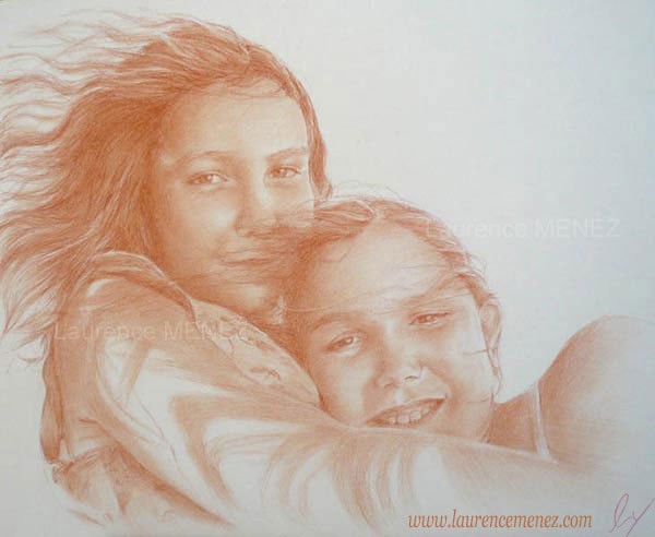 Réalisation d'après photos d'un portrait de 1 visage à la sanguine.