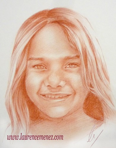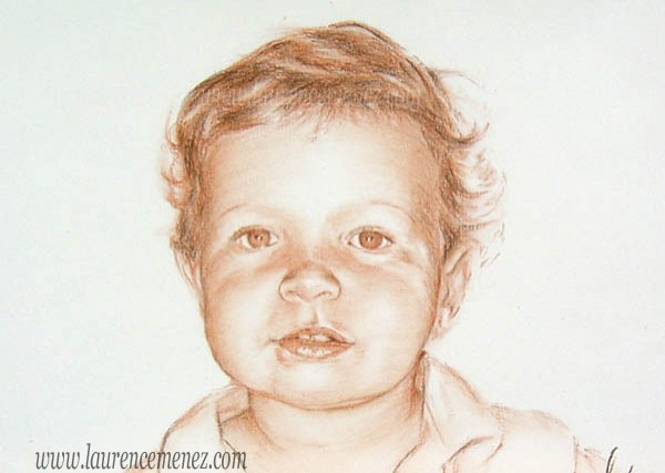 Réalisation d'après photos d'un portrait de 1 visage à la sanguine.