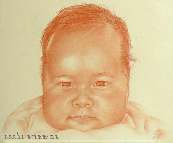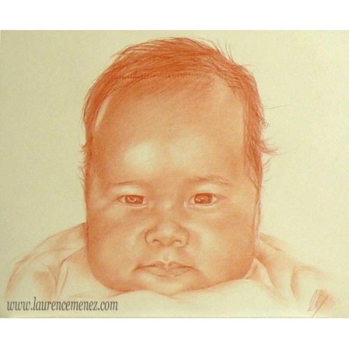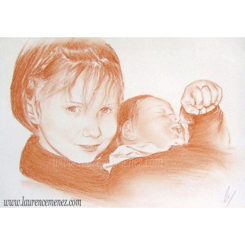 Réalisation d'après photos d'un portrait de 2 visages à la sanguine.