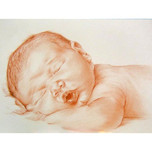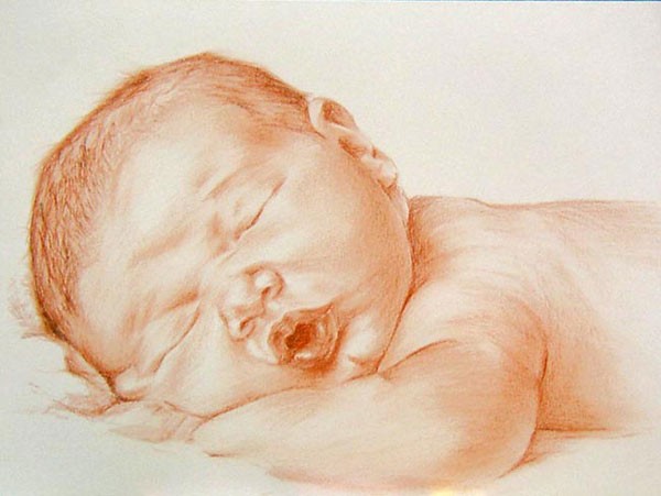 Réalisation d'après photos d'un portrait de 3 visages à la sanguine.