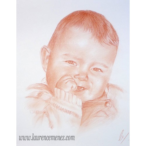 Réalisation d'après photos d'un portrait de 3 visages à la sanguine.