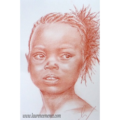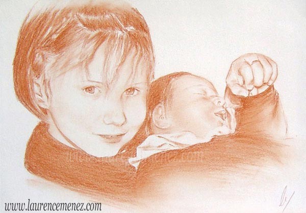 Réalisation d'après photos d'un portrait de 4 visages à la sanguine.