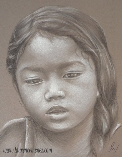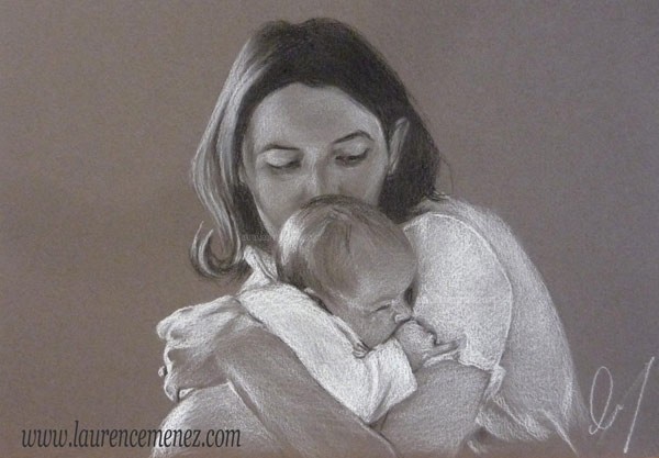Réalisation d'après photos d'un portrait de 3 visages aux pastels.