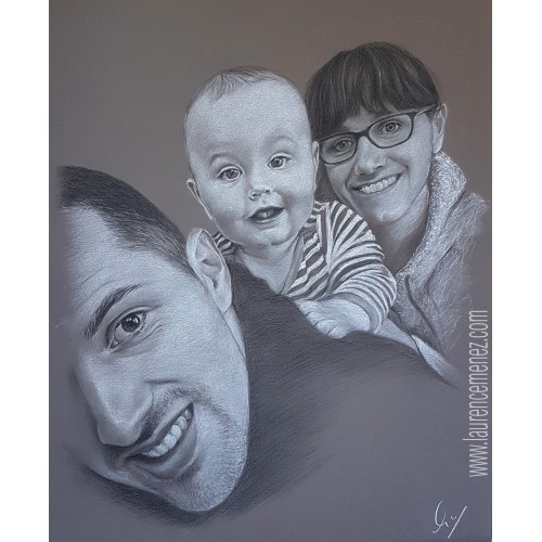 Réalisation d'après photos d'un portrait de 4 visages aux pastels.