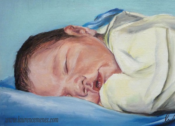 Réalisation d'après photos d'un portrait de 1 visage en peinture à l'huile.