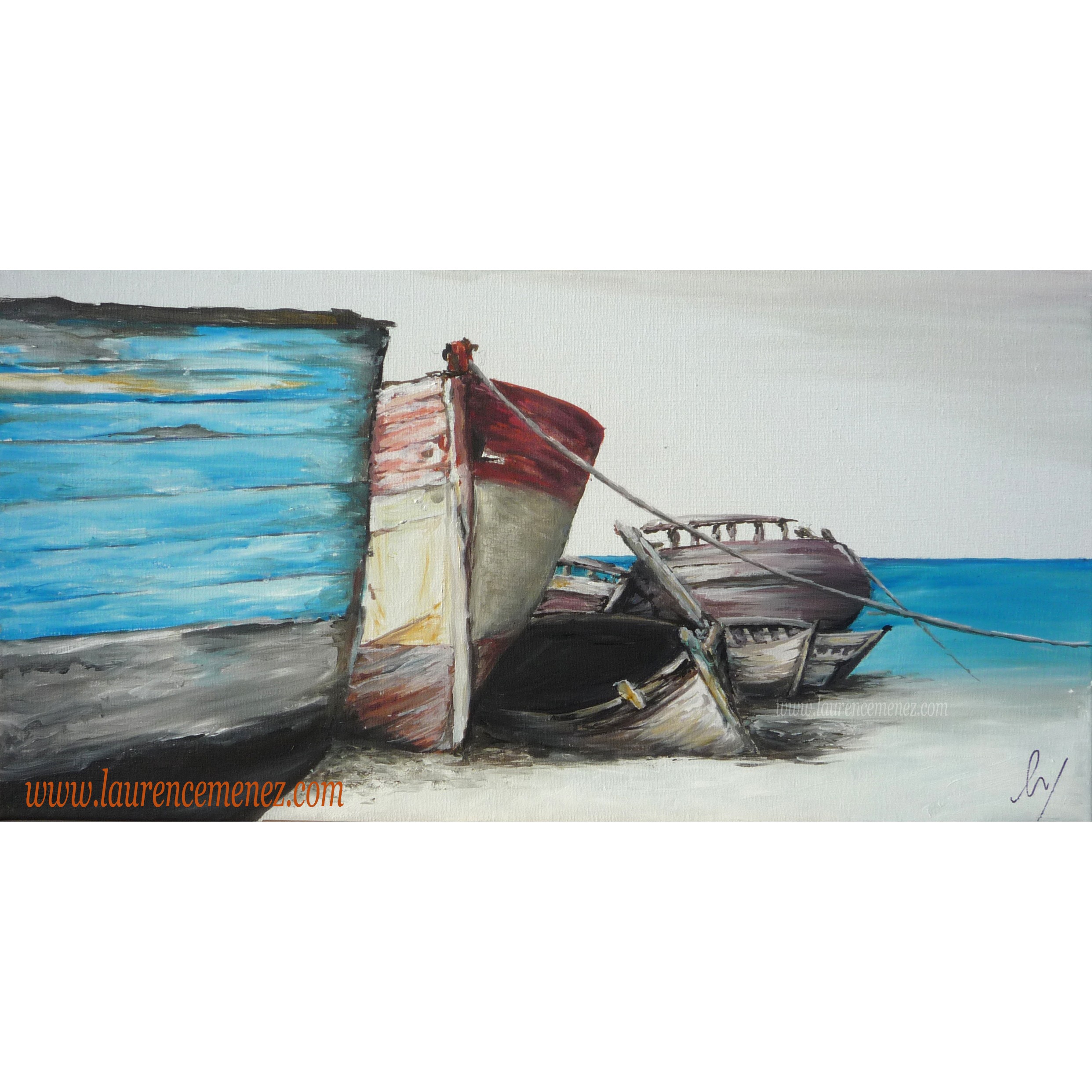 - La toile est tendue sur un châssis bois, ses bords sont peints et la toile est donc prête à être accrochée au mur.