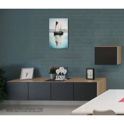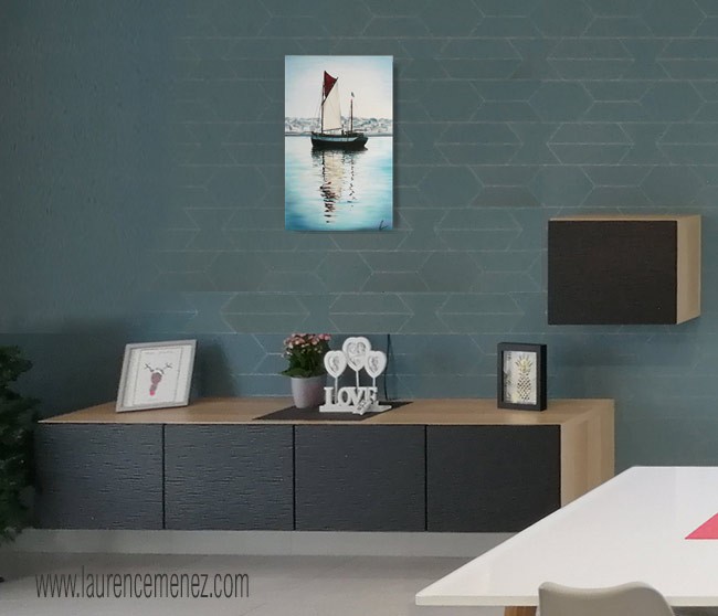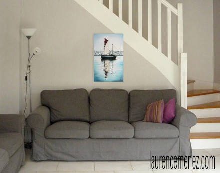 - La toile est tendue sur un châssis bois, ses bords sont peints et la toile est donc prête à être accrochée au mur.