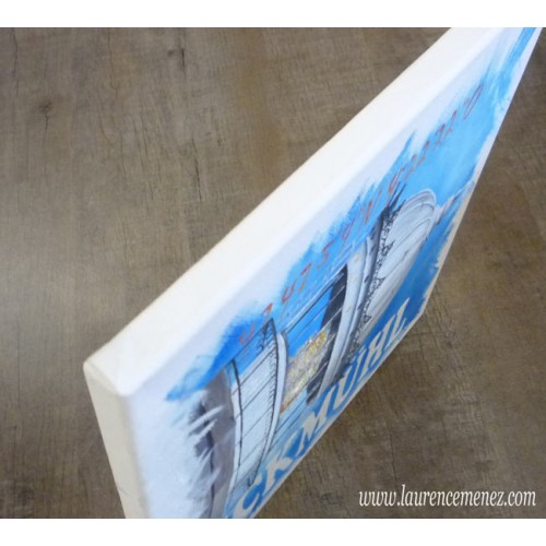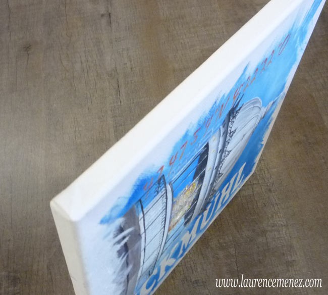- La toile est tendue sur un châssis bois, ses bords sont peints en blancs, la toile est donc prête à être accrochée au mur.