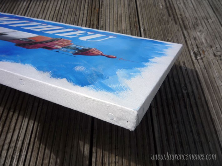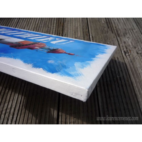 - La toile est tendue sur un châssis bois, ses bords sont peints en blancs, la toile est donc prête à être accrochée au mur.