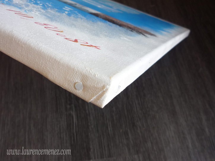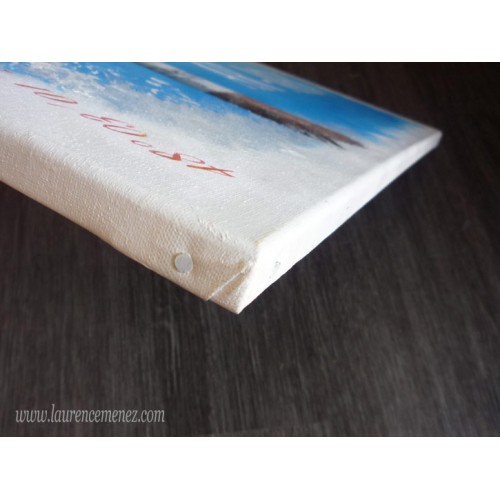 - La toile est tendue sur un châssis bois, ses bords sont peints en blancs, la toile est donc prête à être accrochée au mur.