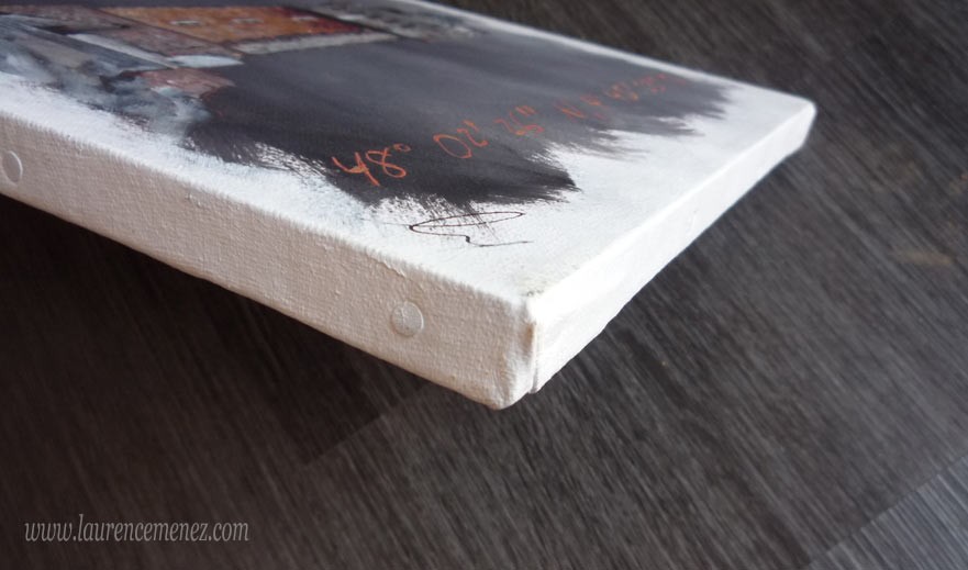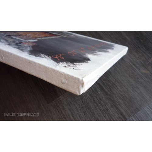 - La toile est tendue sur un châssis bois, ses bords sont peints en blancs, la toile est donc prête à être accrochée au mur.