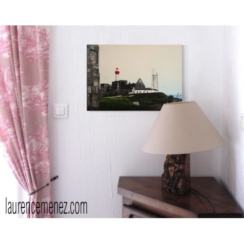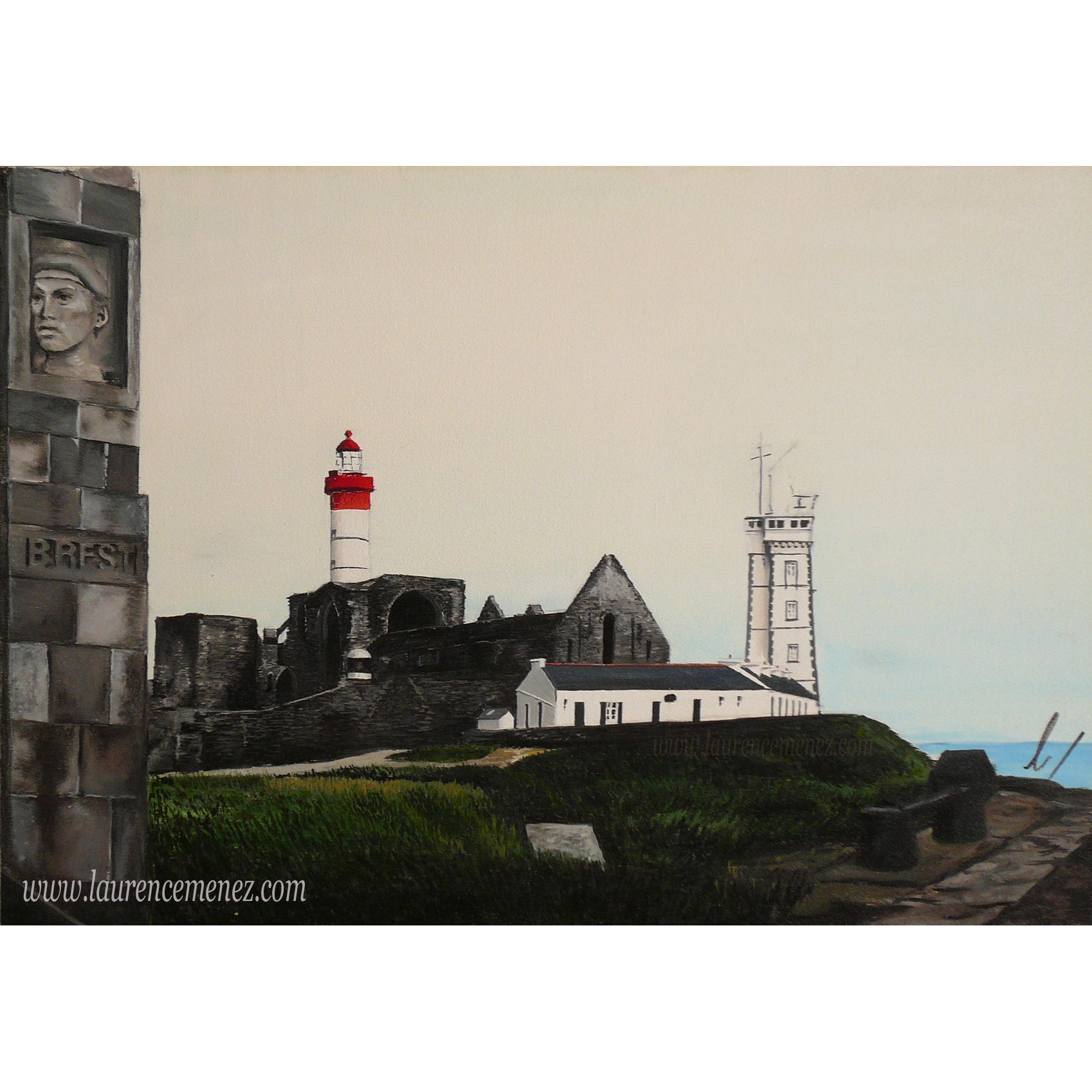 Tableau en peinture à l'huile représentant le phare de Saint-Mathieu.