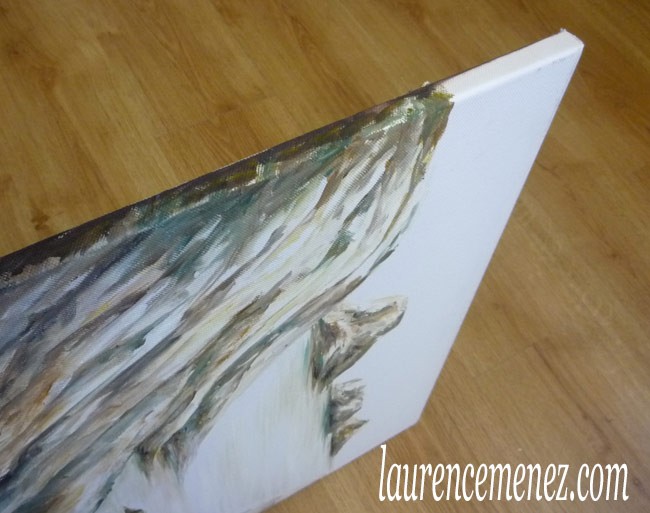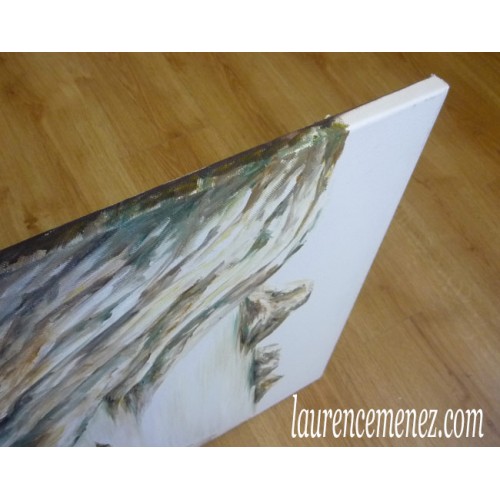 - La toile est tendue sur un châssis bois, ses bords sont peints, la toile est donc prête à être accrochée au mur.