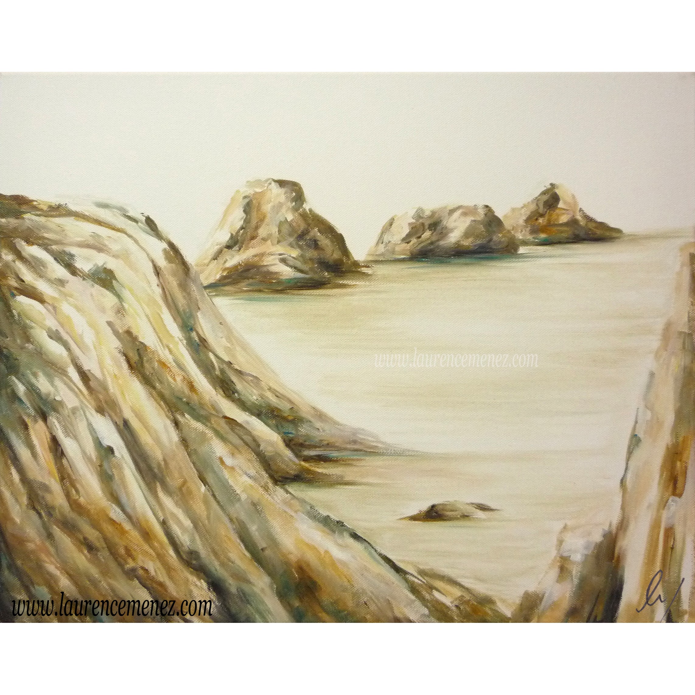 Tableau sur toile représentant les tas de Pois de la pointe de Pen-Hir à Camaret sur Mer dans les tons ocres