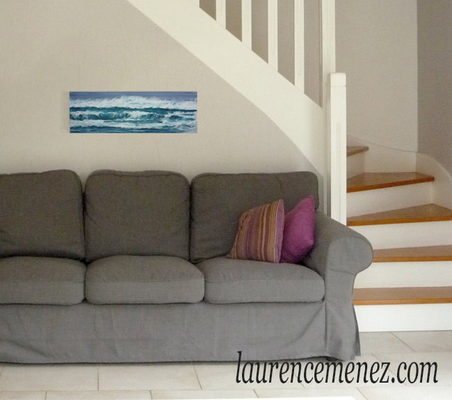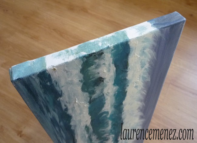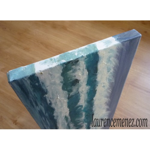 - La toile est tendue sur un châssis bois, ses bords sont peints, la toile est donc prête à être accrochée au mur.