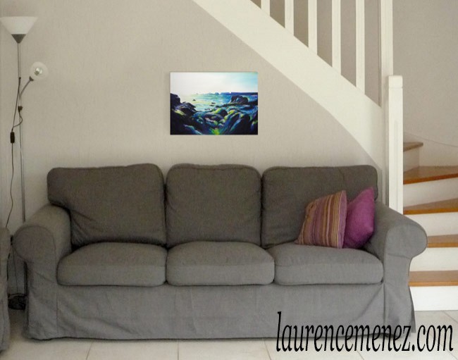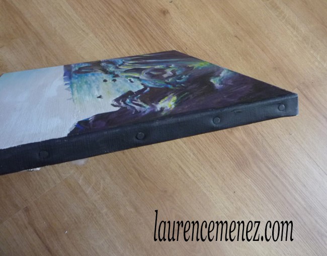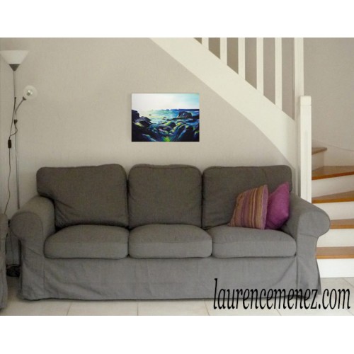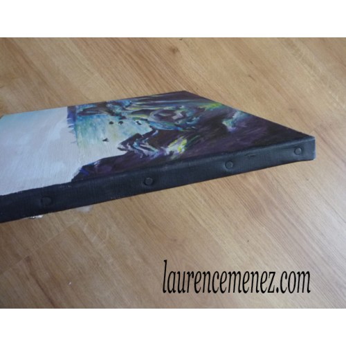 - La toile est tendue sur un châssis bois, ses bords sont peints, la toile est donc prête à être accrochée au mur.