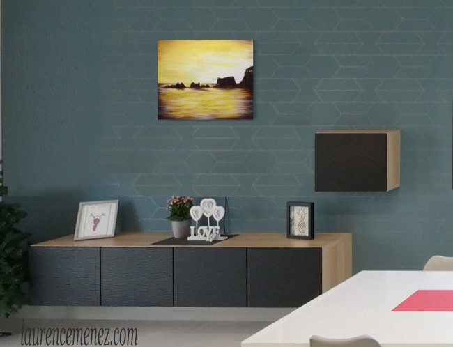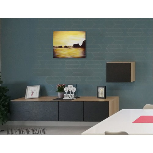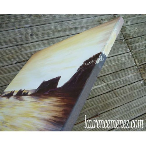 - La toile est tendue sur un châssis bois, ses bords sont peints, la toile est donc prête à être accrochée au mur.