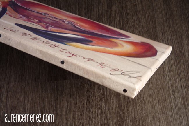 - La toile est tendue sur un châssis bois, ses bords sont peints, la toile est donc prête à être accrochée au mur.