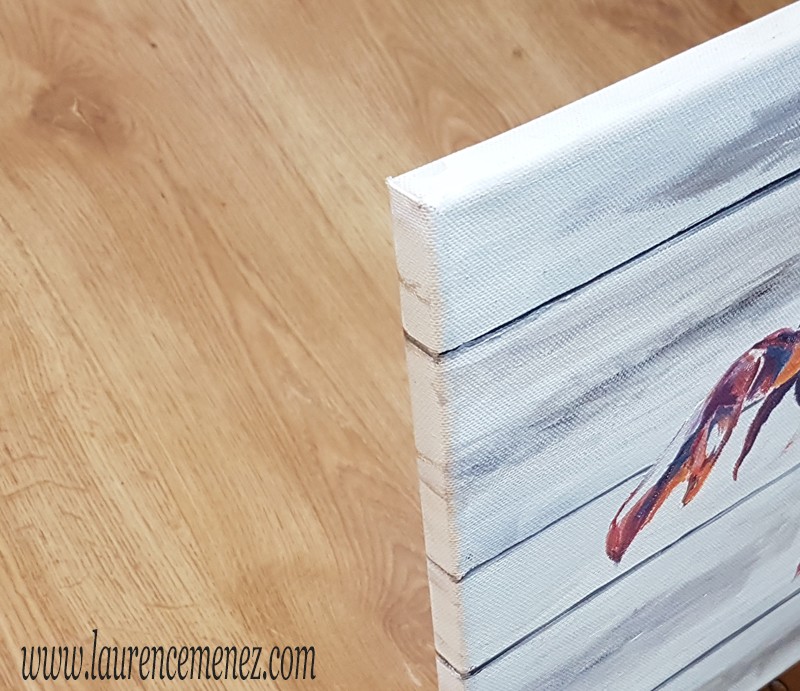 - La toile est tendue sur un châssis bois, ses bords sont peints, la toile est donc prête à être accrochée au mur.