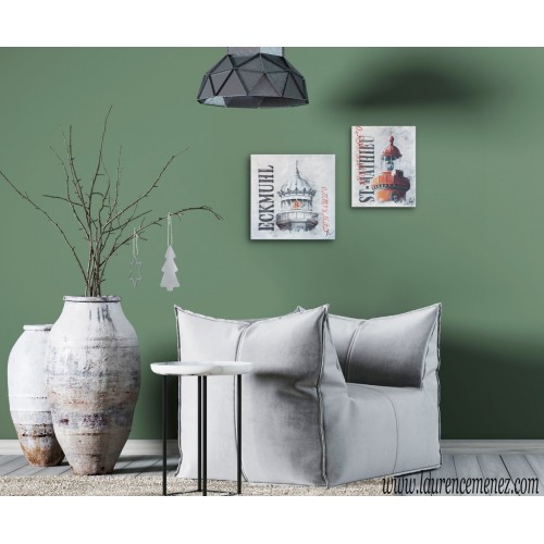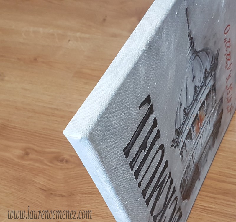 - La toile est tendue sur un châssis bois, ses bords sont peints en blancs, la toile est donc prête à être accrochée au mur.