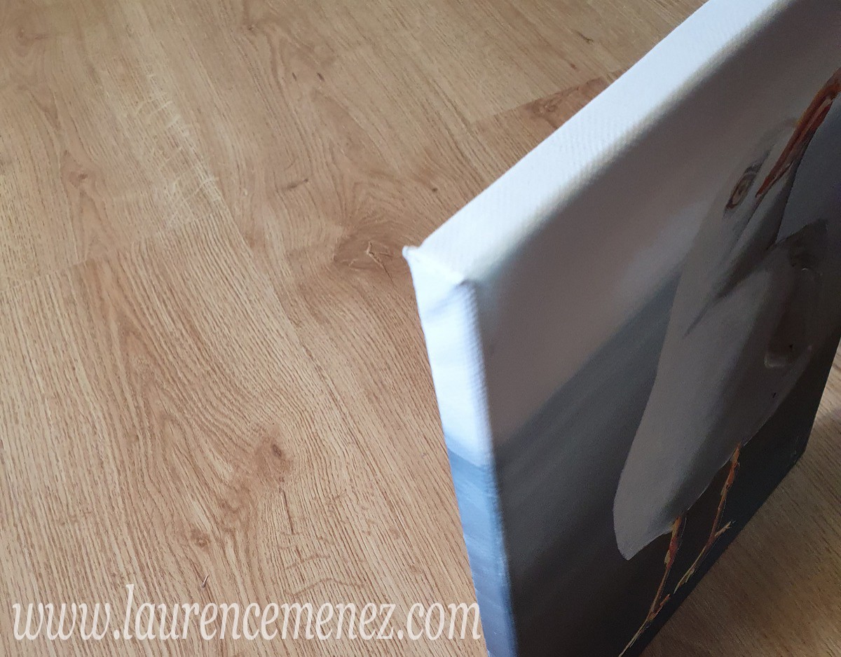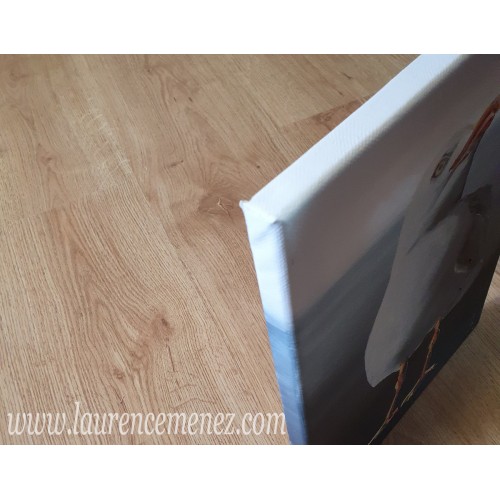 - La toile est tendue sur un châssis bois, ses bords sont peints, la toile est donc prête à être accrochée au mur.