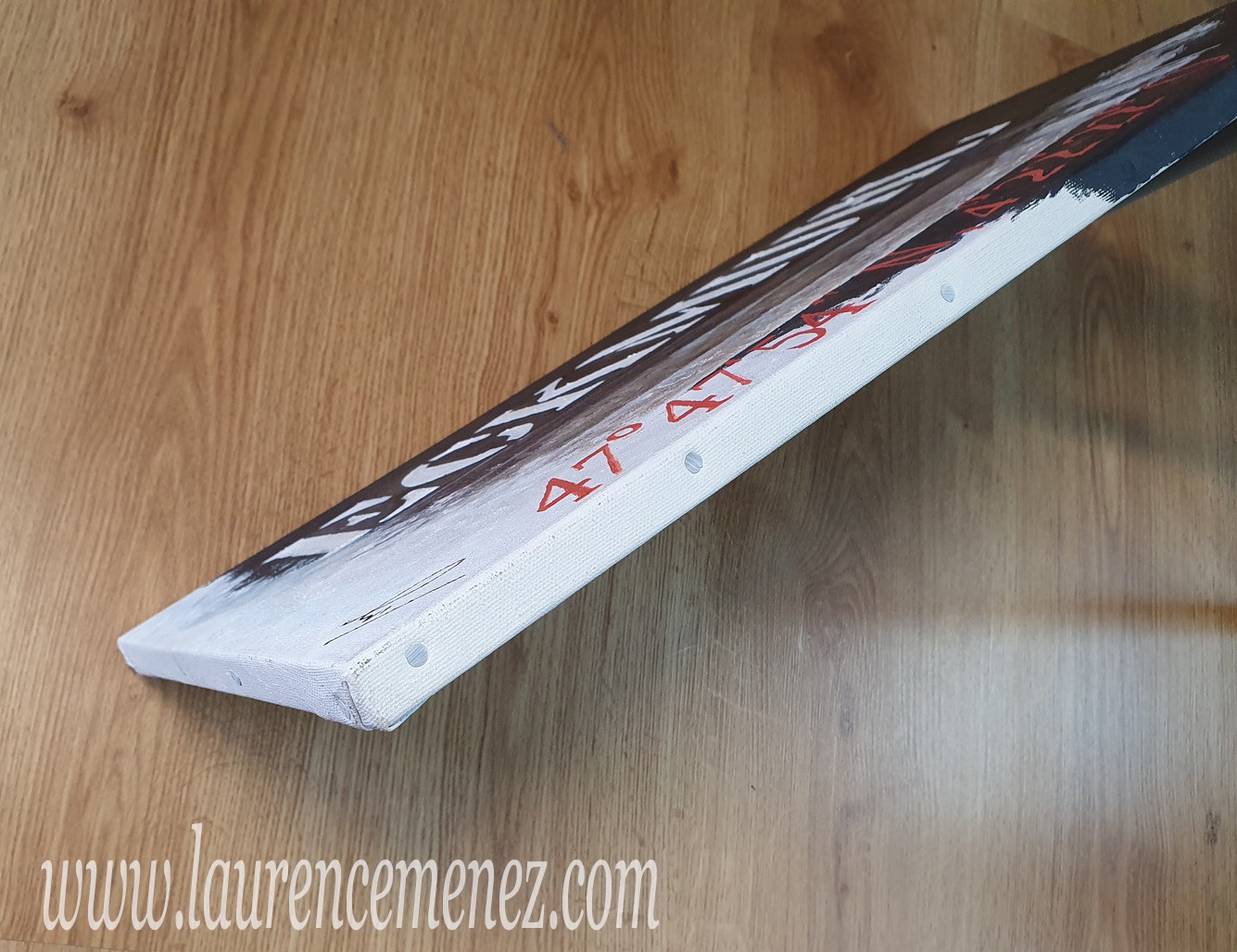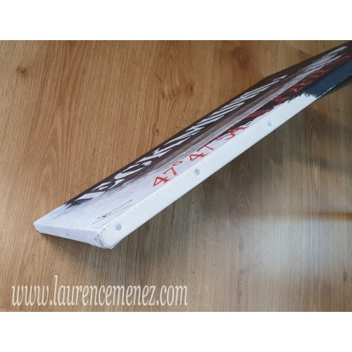 - La toile est tendue sur un châssis bois, ses bords sont peints, la toile est donc prête à être accrochée au mur.