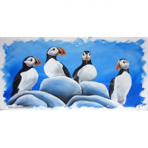 Macareux -N°213 - Peinture à l'huile format 30x60cm