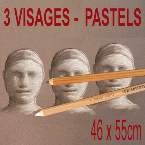 290€ - Portrait 3 visages aux pastels - 46x55cm
