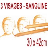230€ - Portrait 3 visages à la sanguine - 38x46cm
