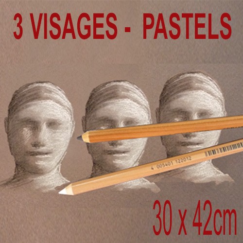 210€ - Portrait 3 visages aux pastels - 30x42cm