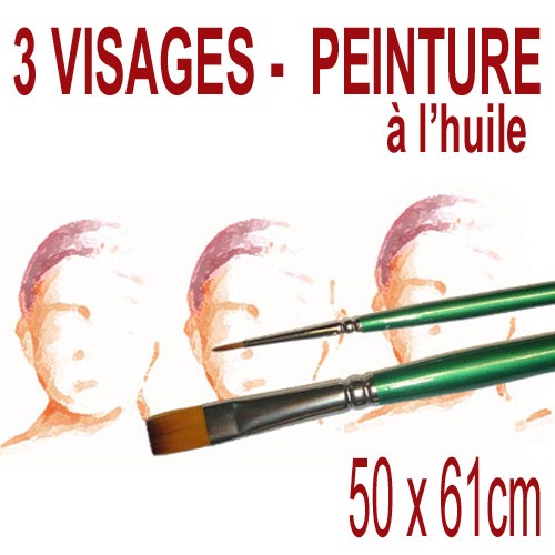 725€ - Portrait 3 visages en peinture à l'huile- 50x61cm